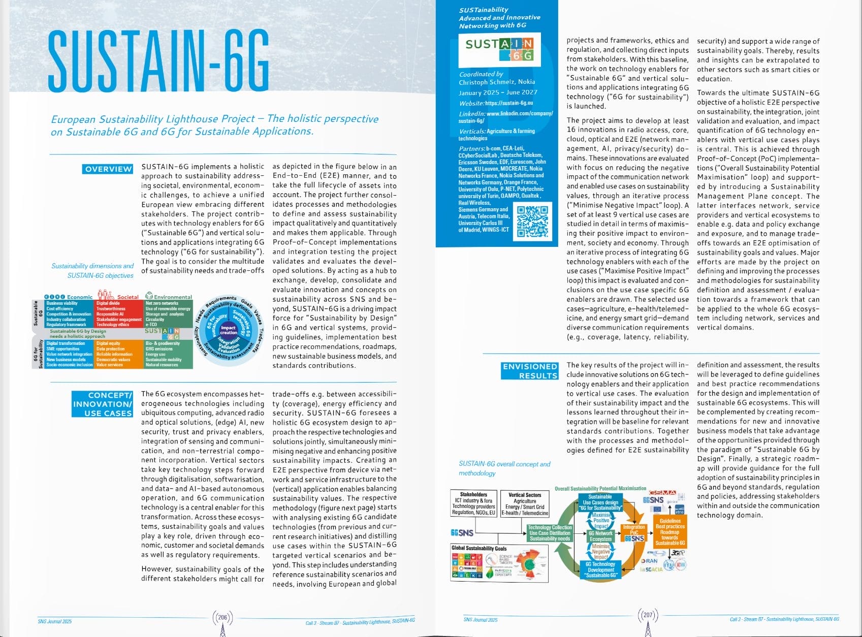 This recognition in the SNS JU Journal 2025 reflects the commitment of SUSTAIN-6G to not only advance technical excellence in 6G, but also to help build a resilient, inclusive, and sustainable digital infrastructure across Europe.